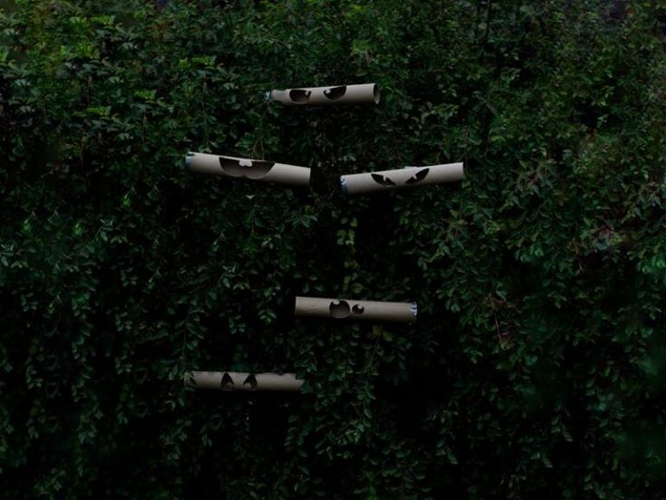 Вырежьте из бумаги или картонных труб (например, от бумажных полотенец) пару глаз. Вставьте в них маленькие светящиеся светодиодные огоньки или неоновые палочки. Разместите глаза в тёмных углах комнаты, шкафах или в других местах, где их свечение будет выглядеть особенно мистично. Этот декор отлично впишется под любой интерьер дома.