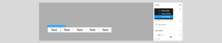 6. После объединения мы не можем редактировать каждую новую ячейку по отдельности. Чтобы это изменить, нужно нажать на каждую из них в параметрах слева, а затем поменять параметр, который находится справа — Fixed на Fill container. Это нужно сделать в каждой ячейке.